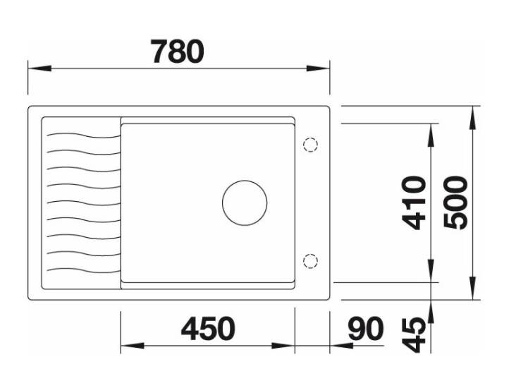 • Oboustranný dřez dodávaný s manuální výpusti vhodný pro zabudování na pracovní desku i pod pracovní desku