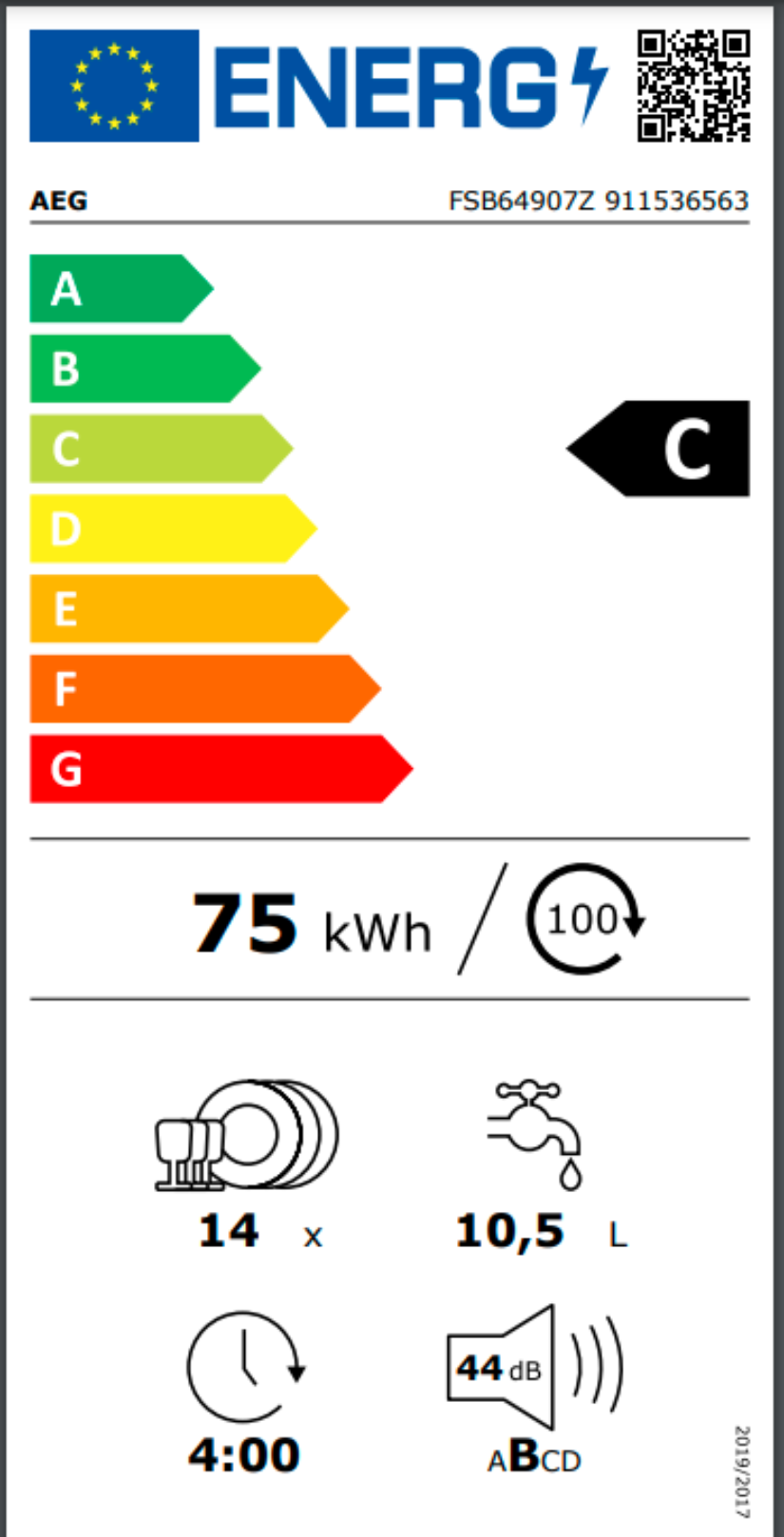 Kapacita mytí: 14: Podle normy IEC pro sadu nádobí. Jednou sadou nádobí je podle této normy: talíř, hluboký talíř, dezertní talíř, sklenice, čajový šálek s podšálkem, nůž, vidlička, polévková lžíce, dezertní lžíce a lžička.