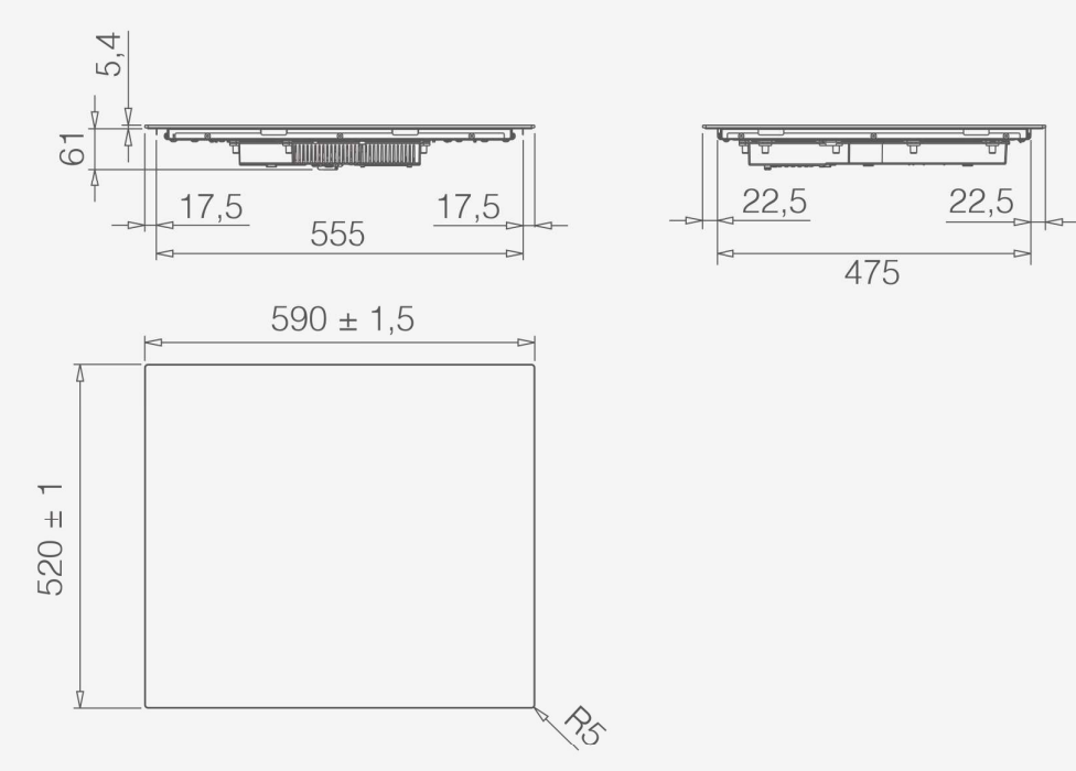 Varné zóny: 1 (1,2 - 1,6kW) - Ø 160 mm | 1 (1,5 - 2kW) - Ø 180 mm | 1 (2,7 - 3,6kW) - Ø 280 mm