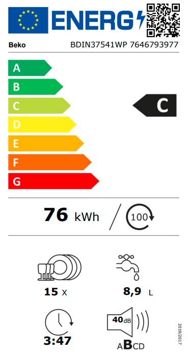 Spotřeba energie (kWh/cyklus)   0.758 kWh