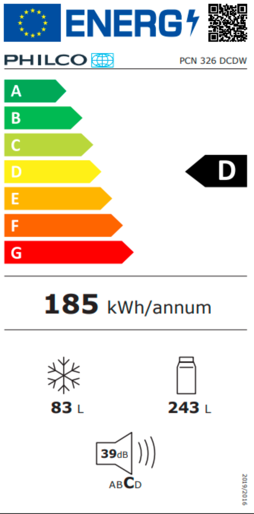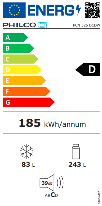 Roční spotřeba energie 185 kWh