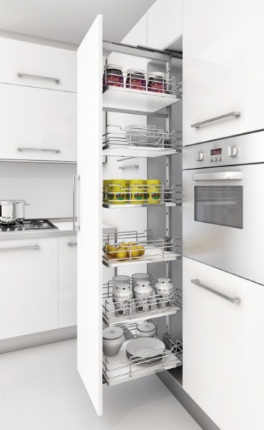 potravinová skříň s tlumeným dovřením, pro šířku korpusu 300mm,v.1215-1515mm,4 koše,výsuv GRASS