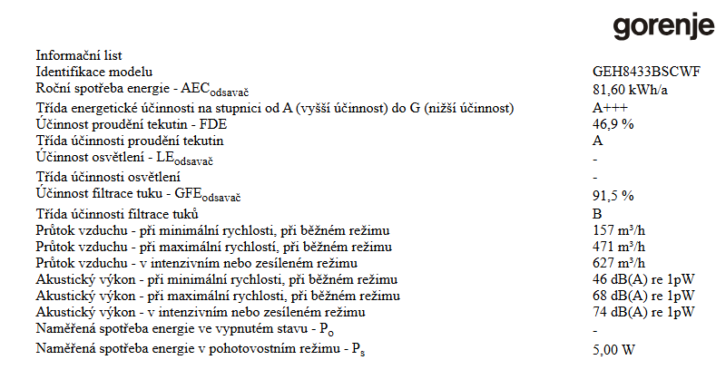 Kód uhlíkového filtru (nutné pro recirkulaci, není součástí odsavače)