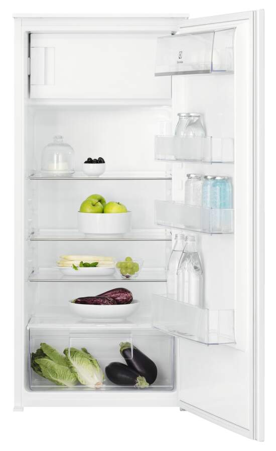 Vestavná jednodveřová chladnička Electrolux LFB3AE12S v energetické třídě E nabízí objem chladničky 174 l a objem mrazničky 14 l. S roční spotřebou energie 146 kWh a maximální hlučností 35 dB se vyznačuje svou účinností a tichým provozem. Rozměry chladničky jsou 54,8 cm (šířka), 121,8 cm (výška) a 54,9 cm (hloubka).