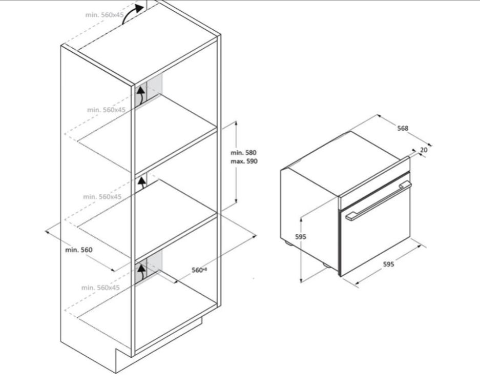 | Výška pro vestavbu cm | 58 |