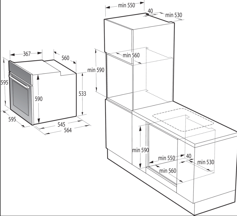 Minimální výška otvoru pro vestavění (mm)        590 mm