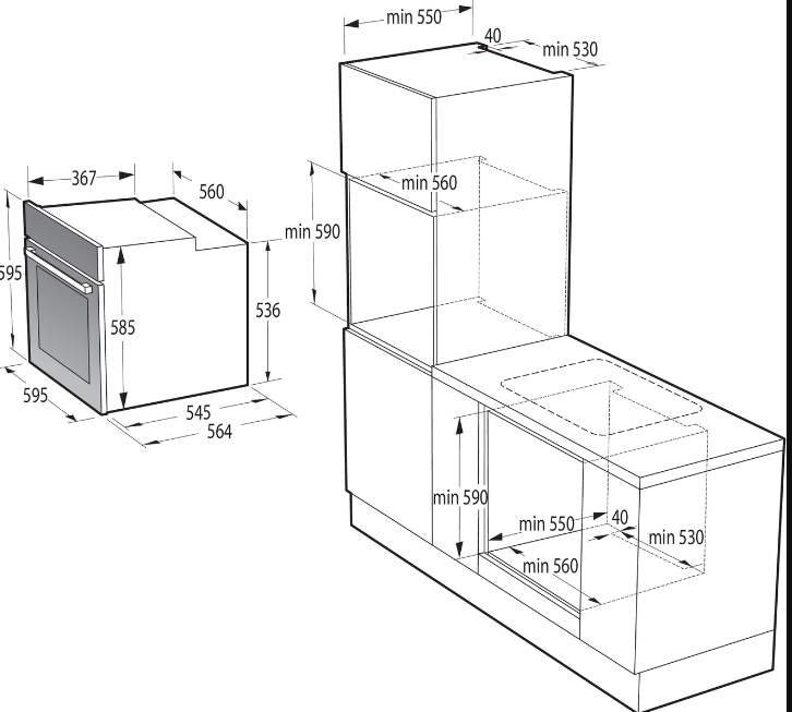 Typ konstrukce: Vestavný typ, Šířka spotřebiče: 595 mm, Výška spotřebiče: 595 mm, Třída energetické účinnosti: A, IconLed