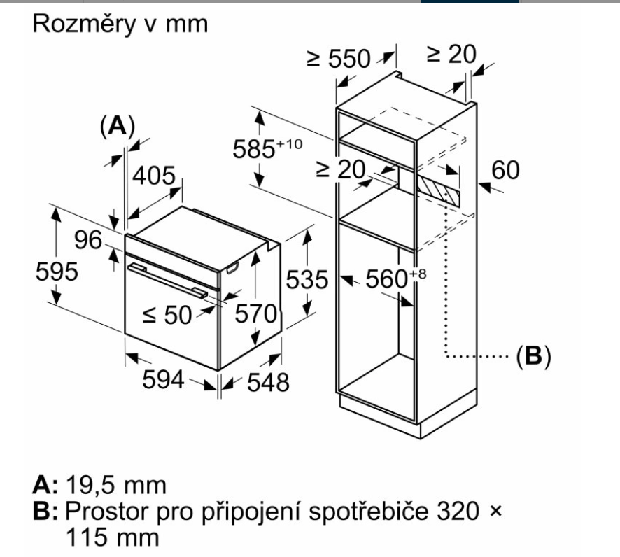 rozměry niky (V x Š x H): 585 mm - 595 mm x 560 mm - 568 mm x 550 mm