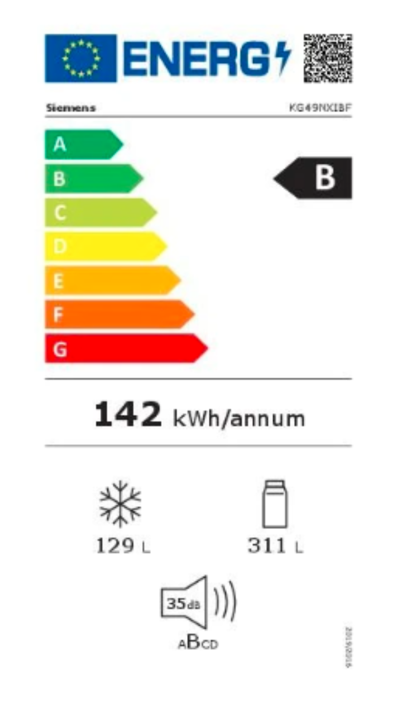 Volně stojící kombinovaná lednice,  , Barva: Nerezová, Energetická třída: B, Rozměry (VxŠxH): 2030x700x667 mm, Celkový objem: 440 l, Technologie: NoFrost, Max. hlučnost: 35 dB,