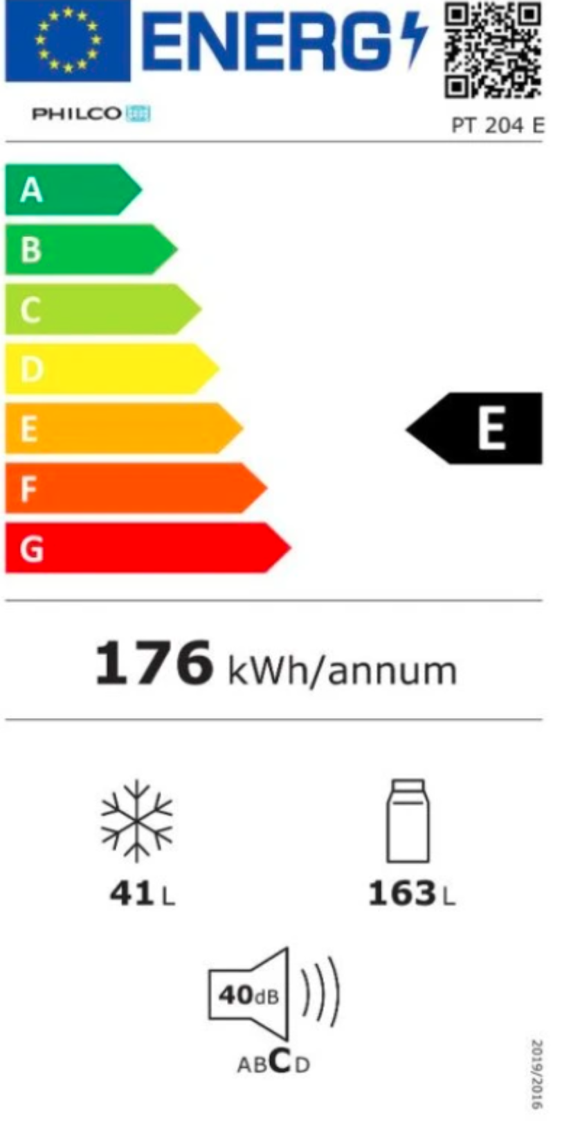 Jednodvéřová chladnička Philco PT 204 EB Energetická třída E Umístění mrazící části nahoře Počet dveří 2 Celkový objem 204 l Emisní třída hluku C Objem chladničky 163 l Objem ...Více informací