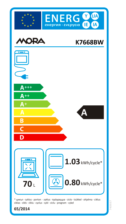 art. number: 740937 EAN: 8590371077692 Kombinovaný sporák s multifunkční troubou bílá barva 4 plynové hořáky s pojistkami STOP GAS vlevo vpředu Ø 5,4 cm 1 kW vpravo vpředu Ø 9 ...Více informací