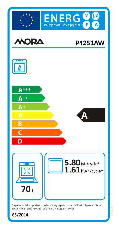 art. number: 741185 EAN: 8590371077647 Plynový sporák bílá barva 4 plynové hořáky s pojistkami STOP GAS vlevo vpředu Ø 5,4 cm 1 kW vpravo vpředu Ø 9,9 cm 3 kW vlevo vzadu Ø 7, ...Více informací