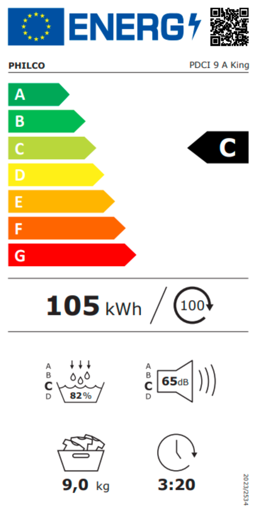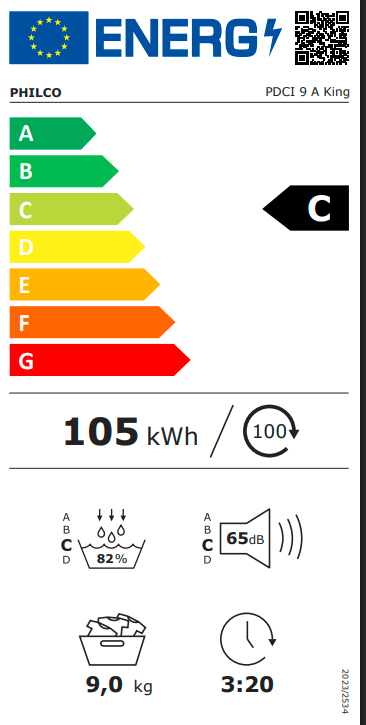 Předem plněná sušička prádla PHILCO PDCI 9 A KING Energetická třída C Hlučnost 65 db Náplň prádla 9 kg Tepelné čerpadlo Invertovový motor 14 programů Crystal buben Můj program ...Více informací